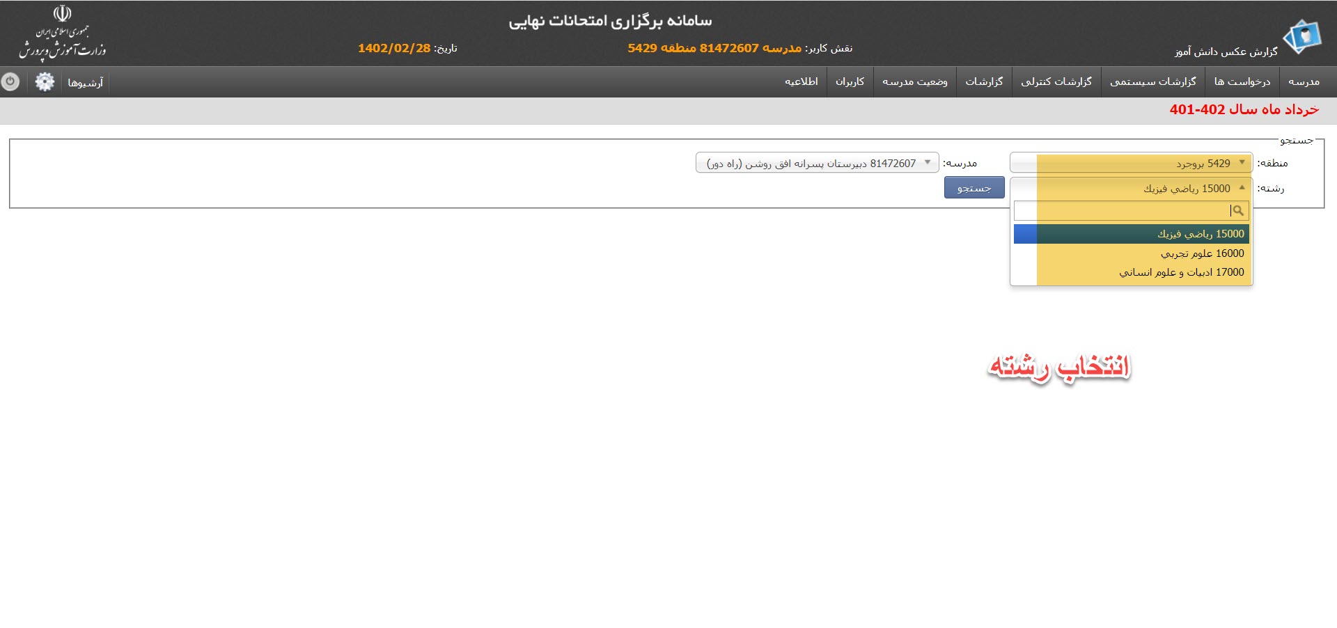 توجه 6) این بخش ها شامل پایه-کلاس، درس، معلم و نوع انتخاب (حضوری - غیر حضوری - مهارت خارج از مدرسه) می باشد.