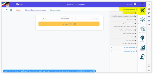 یک) ابتدا وارد سامانه سیدا شده و از بخش سازماندهی و ثبت نام عنوان شروع دوره تحصیلی را کلیک نمایید.