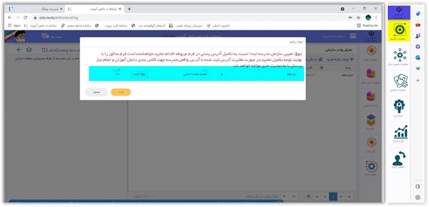 پنج) در این صفحه ابتدا روی عنوان ایجاد رشته جدید، کلیک نموده و در پنجره ای که در اختیار شما قرار می گیرد پایه و رشته را انتخاب نمایید.