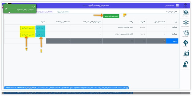 سیزده) سپس دروس مربوط به هر دانشآموز را انتخاب و در نهایت اعتبارسنجی و تایید نمایید.