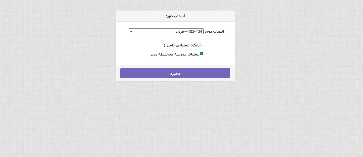 الف) از بخش انتخاب دوره مربوطه (مثلا خرداد 404-403) را انتخاب و تیک متوسطه دوم را زده و ذخیره می نماییم.