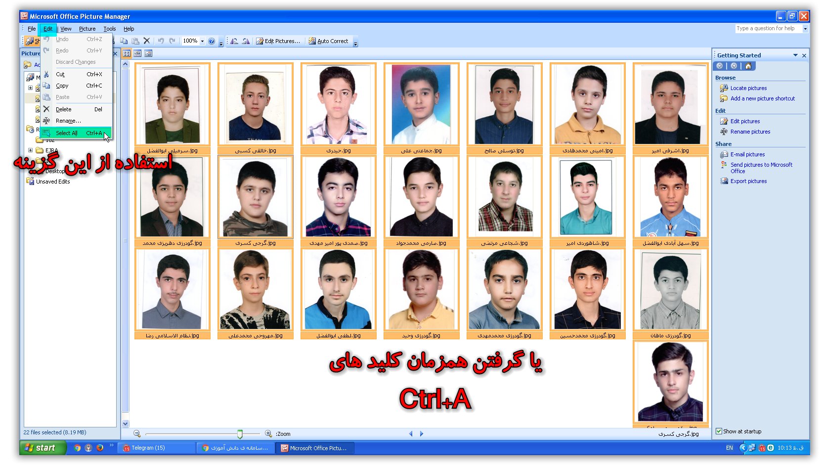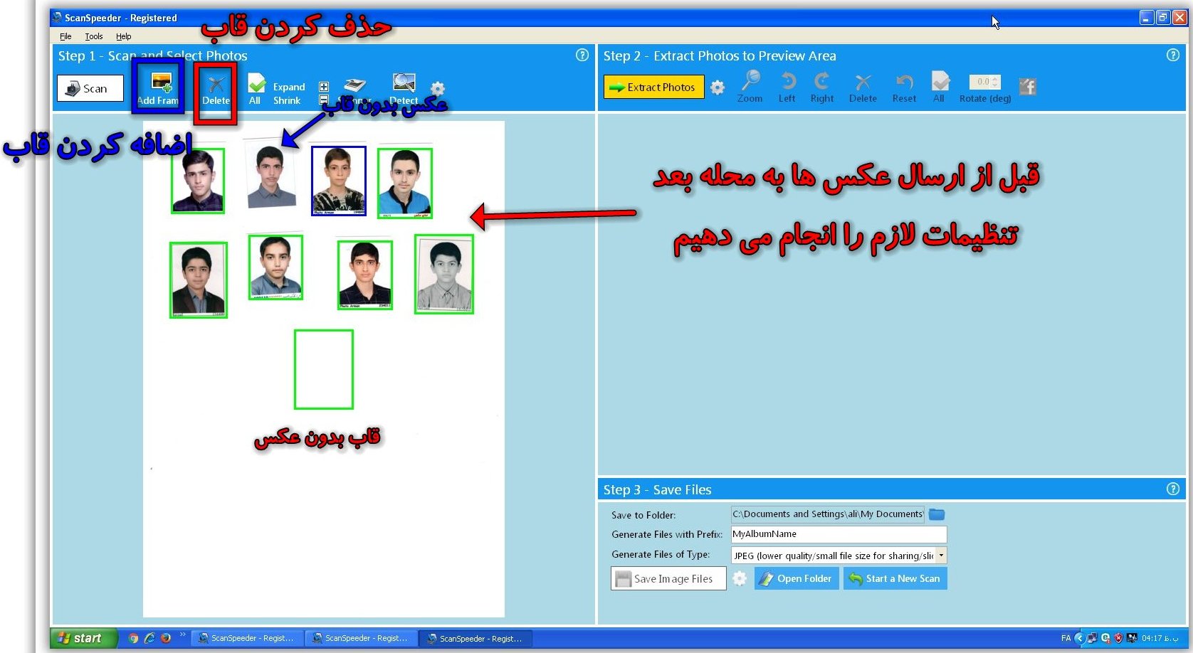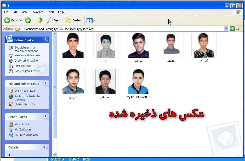 ۱۰ ) پس از اتمام کار بر روی عنوان Extract Photoes کلیک نمایید تا به پنجره روبرو منتقل شوند. ۱۱ ) در این بخش می توانید اسامی دانش آموزان را در زیر هر عکس تایپ نمایید. ۱۲ ) با اتمام کار می توانید بر روی عنوان Save Image Files کلیک نمایید تا عکس ها ذخیره شوند