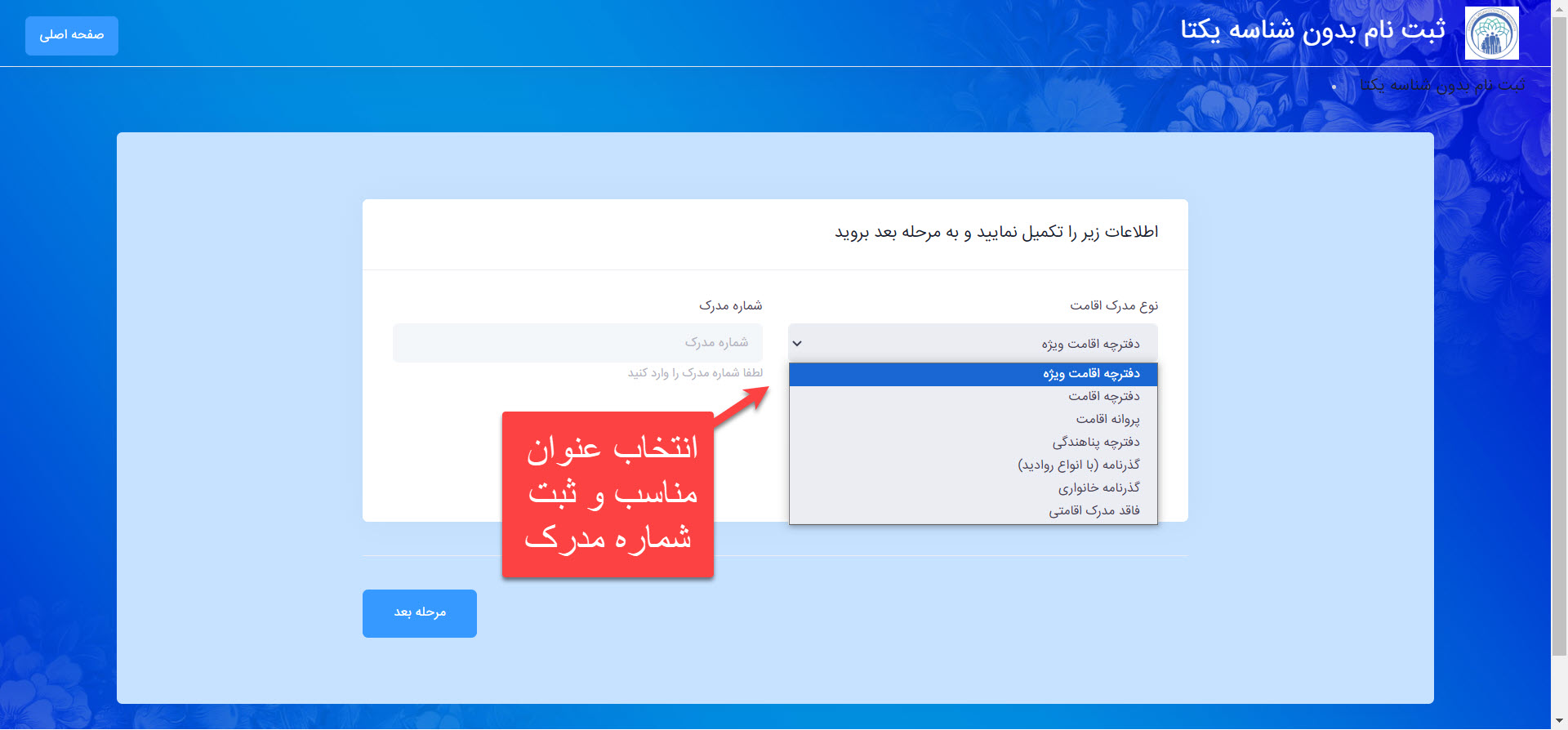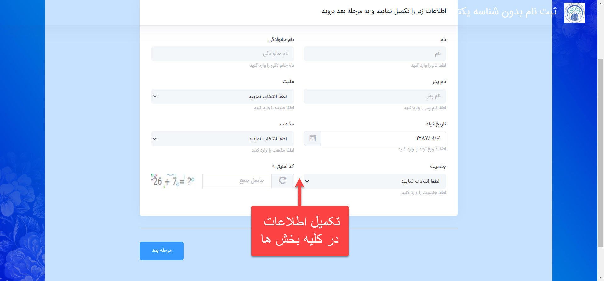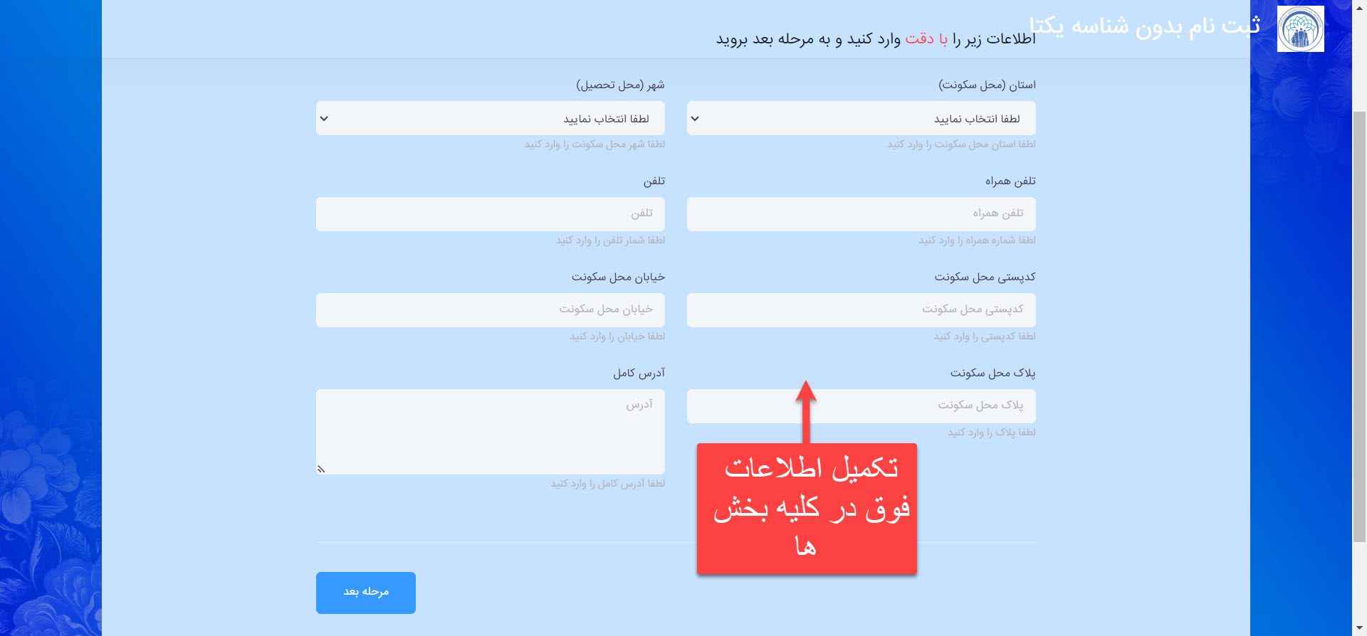 ۸. با لمس عنوان مرحله بعد وارد صفحه جدید میشوند. در این صفحه کلیه اطلاعات خواسته شده را در همه بخشها تکمیل مینمایند.