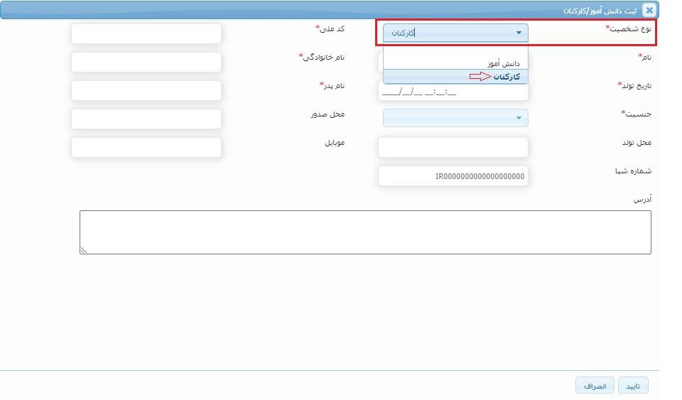 ثبت اطلاعات تکمیلی نیروهای غیر رسمی