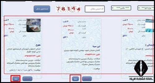 پس از وارد نمودن نام کاربری و رمز عبور و ورود به حساب کاربری، افراد می بایست بر اساس استان و شهر مورد نظر خود یکی از هتل ها و یا اقامتگاه های مورد نظر را انتخاب کرده و پس از تعیین تاریخ و مدت زمان اقامت، تعداد اتاق و... بر روی گزینه "جستجوی محل" کلیک نمایند. بدین ترتیب نتیجه جستجو در قالب عکس هایی از محل اقامتگاه و توضیحاتی در رابطه با آن مکان نمایش داده خواهد شد و افراد می توانند یکی از موارد را به دلخواه انتخاب و بر روی گزینه "رزرو" کلیک نمایند.