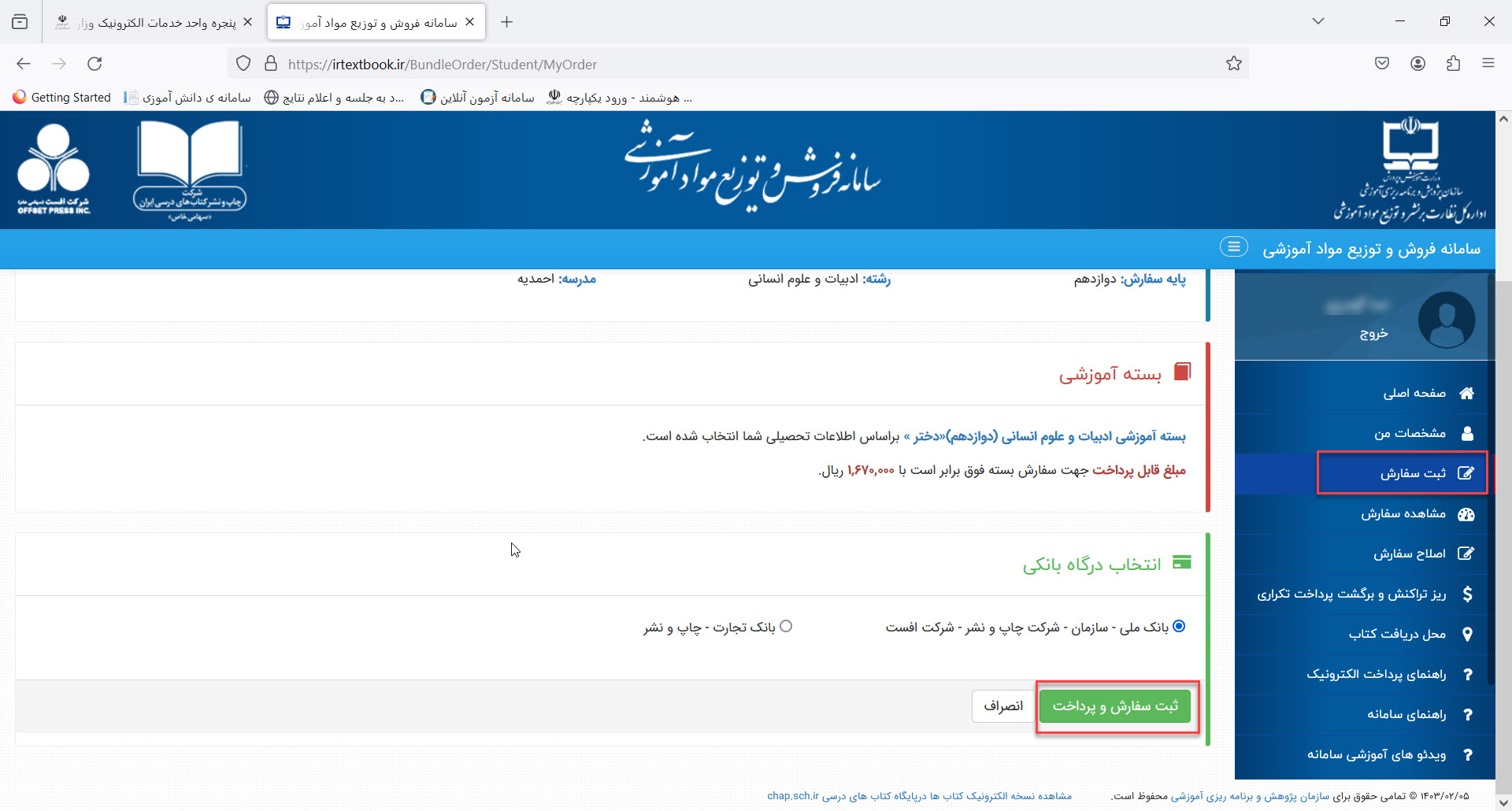 اگر در زمان ثبت سفارش پرداخت صورت نگرفته باشد در این بخش میتوانید روند پرداخت را تکمیل نمایید. روش دوم: ثبت سفارش فردی
