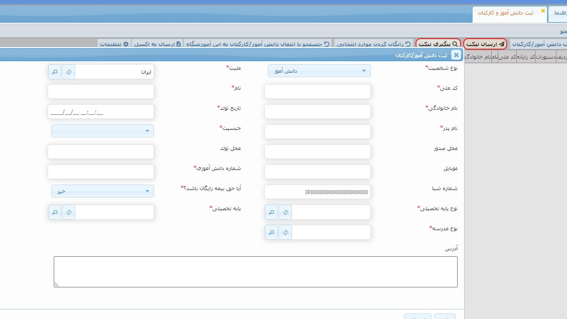 7 - جستجو یا انتقال دانش آموز/کارکنان: