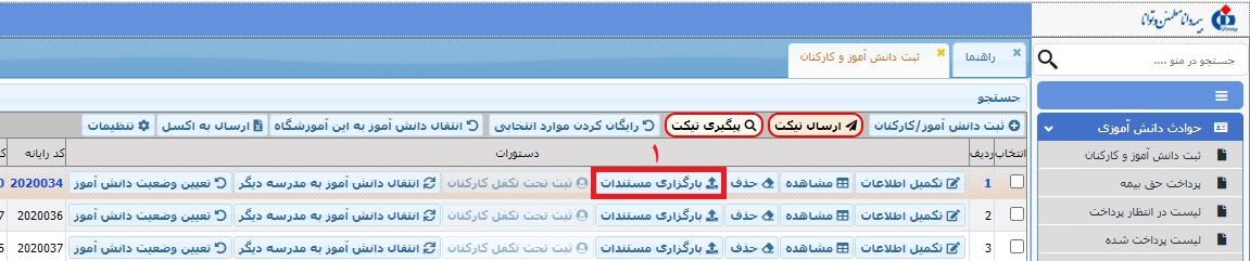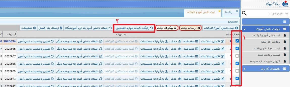 و یا در صورت تعداد بالای دانش آموزان با حق بیمه رایگان می توان با انتخاب تمام دانش آموزان مورد نظر و استفاده از گزینه رایگان