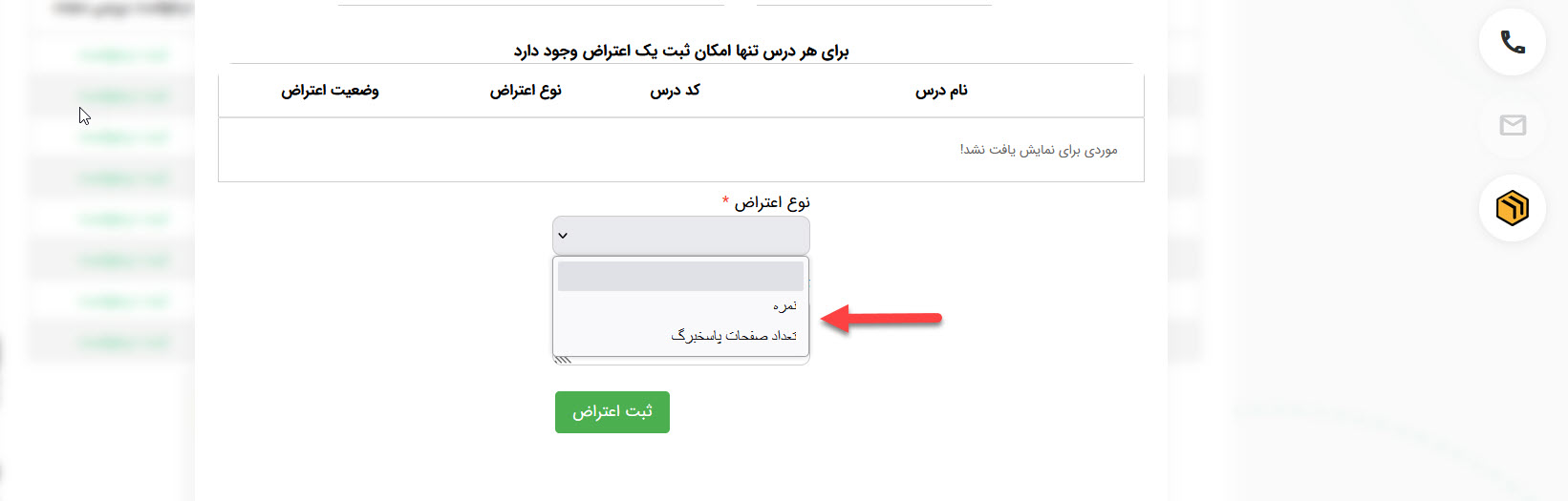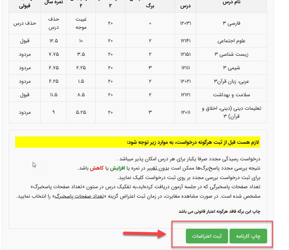 مشاهده نتیجه نمرات و ثبت اعتراض برگه