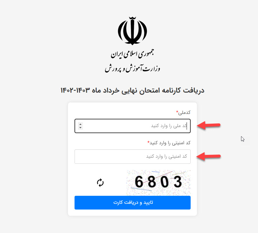 سامانه دیگری که دانش آموز میتواند با استفاده از آن کارنامه خود را دریافت و یا نسبت به ثبت اعتراض اقدام نماید سامانه کارت به آدرس kart.medu.ir میباشد. ۱۲. دانش آموز پس از ورود به این سامانه ابتدا کد ملی و کد امنیتی را درج و تایید مینماید، در مرحله بعد شماره همراه خود را ثبت و تایید میکند.
