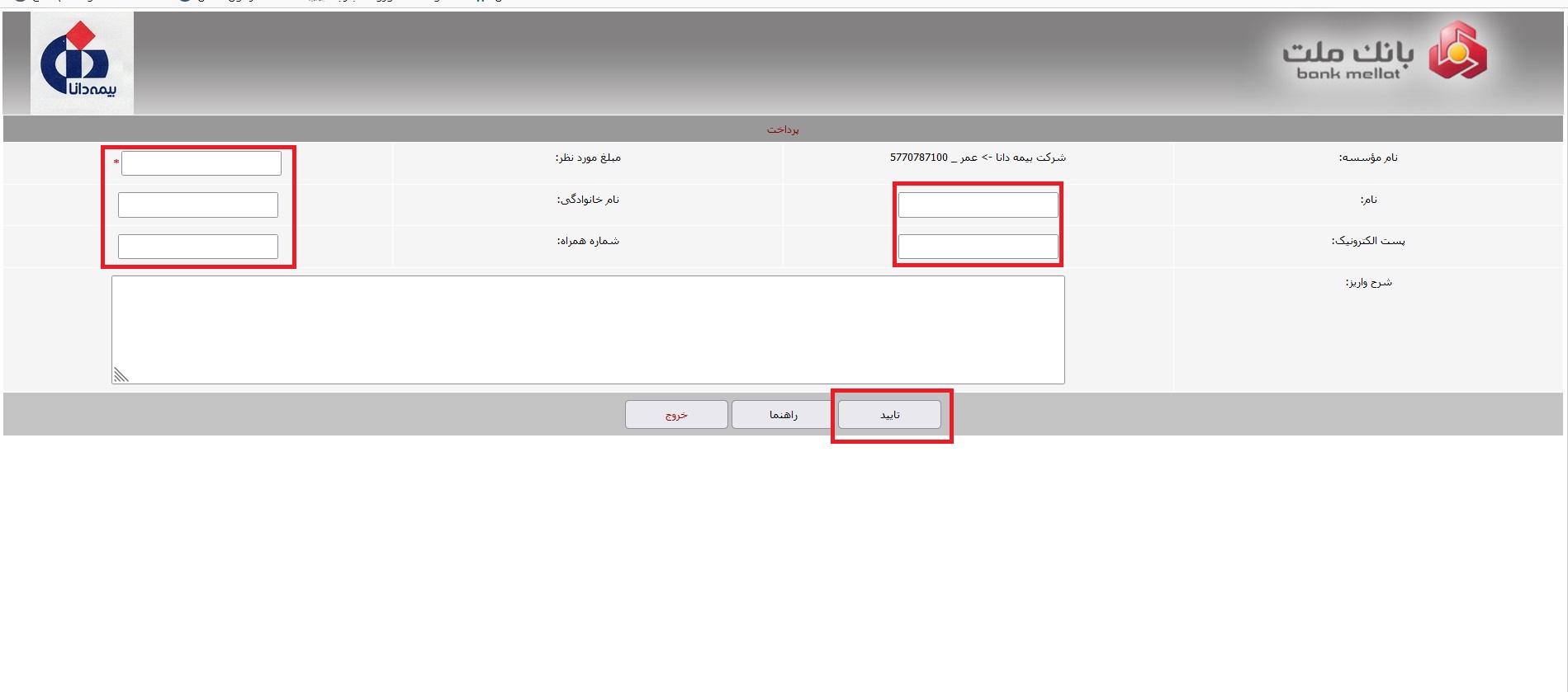 تذکر : پس از پرداخت حق بیمه و کسر از حساب بانکی کاربر، گزینه بازگشت به "مرحله قبل" به هیچ عنوان استفاده نگردد .