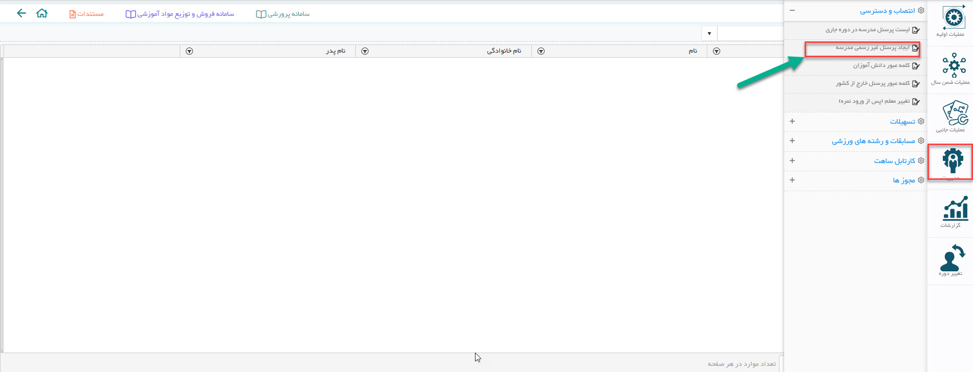 در ذیل دسترسیها و امکاناتی که در کاربری رئیس فناوری استان، مسول سنجش منطقه، فناوری منطقه و همچنین طرح و برنامه قرار دارد جهت اطلاع خدمت شما آورده می شود. 👇🏻👇🏻👇🏻👇🏻👇🏻👇🏻👇🏻👇🏻👇🏻👇🏻👇🏻👇🏻 📌 دسترسی های رئیس فناوری استان ↩️ حذف سابقه پادا ↩️ تغییر همزمان کد ملی و کد دانش آموزی ↩️ تغییر کد دانش آموزی بدون تغییر کد ملی ↩️ دانش آموزان جامانده از تحصیل در سطح استان ↩️ تعریف تمامی نقش های اداری در سطح استان ↩️ تعریف و مشاهده پرسنل غیر رسمی ↩️ گزارشات ↩️ جستجوی دانش آموز در سطح استان ------------------------------------------------------------------------------------- 📌 دسترسی های رئیس فناوری استان 💢 حذف سابقه پادا مسیر انجام کار در سامانهÉ ⬅️عملیات اولیه ⬅️ سازماندهی و ثبت نام ⬅️ اصلاحات پشتیبانی ⬅️ درج کد دانش آموزی در کادر مربوط ⬅️ نمایش وقفه 💢 تغییر همزمان کدملی و کد دانش آموزی مسیر انجام کار در سامانهÉ ⬅️عملیات اولیه ⬅️ سازماندهی و ثبت نام ⬅️ اصلاحات پشتیبانی ⬅️ تغییر همزمان کد ملی و دانش آموزی ⬅️ درج کد دانش آموزی قدیم و جدید ⬅️ لمس عنوان ثبت 💢 تغییر کد دانش آموزی بدون تغییر کد ملی مسیر انجام کار در سامانهÉ ⬅️عملیات اولیه ⬅️ سازماندهی و ثبت نام ⬅️ اصلاحات پشتیبانی ⬅️ تغییر کد دانش آموزی بدون تغییر کد ملی ⬅️ انتخاب سال و دوره مد نظر ⬅️ درج کد دانش آموزی اعتبار سنجشی و تایید × تغییر کد دانش آموزی بدون تغییر کد ملی هم برای تمام دورهها امکان پذیر است و هم بر اساس سال و دوره 💢 دانش آموزان جامانده از تحصیل در سطح استان مسیر انجام کار در سامانهÉ ⬅️ عملیات اولیه ⬅️ عملیات پیش ثبت نام ⬅️ دانش آموزان جامانده از تحصیل ⬅️ مشاهده درخواست های دانش آموزان جامانده تایید یا رد درخواست ⬅️ لمس عنوان تایید یا رد درخواست 💢 تعریف تمامی نقش های اداری در سطح استان مسیر انجام کار در سامانهÉ ⬅️ مدیریت ⬅️ انتصاب و دسترسی ⬅️ لیست پرسنل ⬅️ ایجاد ⬅️ تعریف نقش مورد نظر اداری در سطح استان 💢 تعریف و مشاهده پرسنل غیر رسمی مسیر انجام کار در سامانهÉ ⬅️ مدیریت ⬅️ انتصاب و دسترسی ⬅️ ایجاد پرسنل غیر رسمی ⬅️ ایجاد × تمامی پرسنل غیر رسمی استان در این قسمت قابل مشاهده می باشد که امکان ویرایش نام، نام خانوادگی ونام پدر در این جا میسر می باشد. 💢 گزارشات گزارش های کاملی در استان در خصوص عنوان های زیر وجود دارد: ✔️ گزارش جامع دانش آموزان ✔️ گزارش شاد ✔️ گزارش جامع کلاسبندی ✔️ گزارش جامع ثبت نام ✔️ گزارش جامع اتباع ✔️ گزارش جست و جوی دانش آموز ✔️ گزارش جامع پیش ثبت نام 💢 جستجوی دانش آموز در سطح استان مسیر انجام کار در سامانهÉ ⬅️ گزارشات ⬅️ جستجوی دانش آموز ⬅️ درج کد ملی دانش آموز ================================================== 📌 دسترسی های سنجش منطقه ↩️ ثبت نام دانش آموزان حذف شده↩️ برگشت و ثبت نام دانش آموزان ابطال شده ↩️ بررسی نقل و انتقال دانش آموزان ↩️ مشاهده سوابق (کارنامه) دانش آموزان ↩️ دانش آموزان جا مانده از تحصیل ↩️ اصلاح انتخاب واحد دوازدهم ↩️ ثبت اصلاحات پشتیبانی (منطقه) ↩️ تغییر کد دانش آموزی بدون تغییر کد ملّی ↩️ دریافت سوابق دانش آموزان منتقل شده(از مدرسه مقصد) منطقه ↩️ صدور مجوز کلاسبندی ↩️ ثبت مجوز برای اصلاح سوابق --------------------------------------------------------------------------------- 💢 دسترسی های مسئول سنجش منطقه 📌 ثبت نام دانش آموزان حذف شده مسیر انجام کار در سامانهÉ ⬅️ عملیات اولیه ⬅️ سازماندهی و ثبت نام ⬅️ ثبت نام و نمایش انتخاب دروس دانش آموزان ⬅️ لمس دانش آموزان حذف شده ⬅️درج کد دانش آموزی و لمس جستجو 📌 بررسی نقل و انتقال دانش آموزان مسیر انجام کار در سامانهÉ ⬅️ عملیات اولیه ⬅️ سازماندهی و ثبت نام ⬅️ بررسی نقل و انتقال دانش آموزان 📌 سوابق (کارنامه) دانش آموزان مسیر انجام کار در سامانهÉ ⬅️ عملیات اولیه ⬅️ سازماندهی و ثبت نام ⬅️ اصلاحات پشتیبانی منطقه ⬅️ کارنامه دانش آموزان ⬅️درج