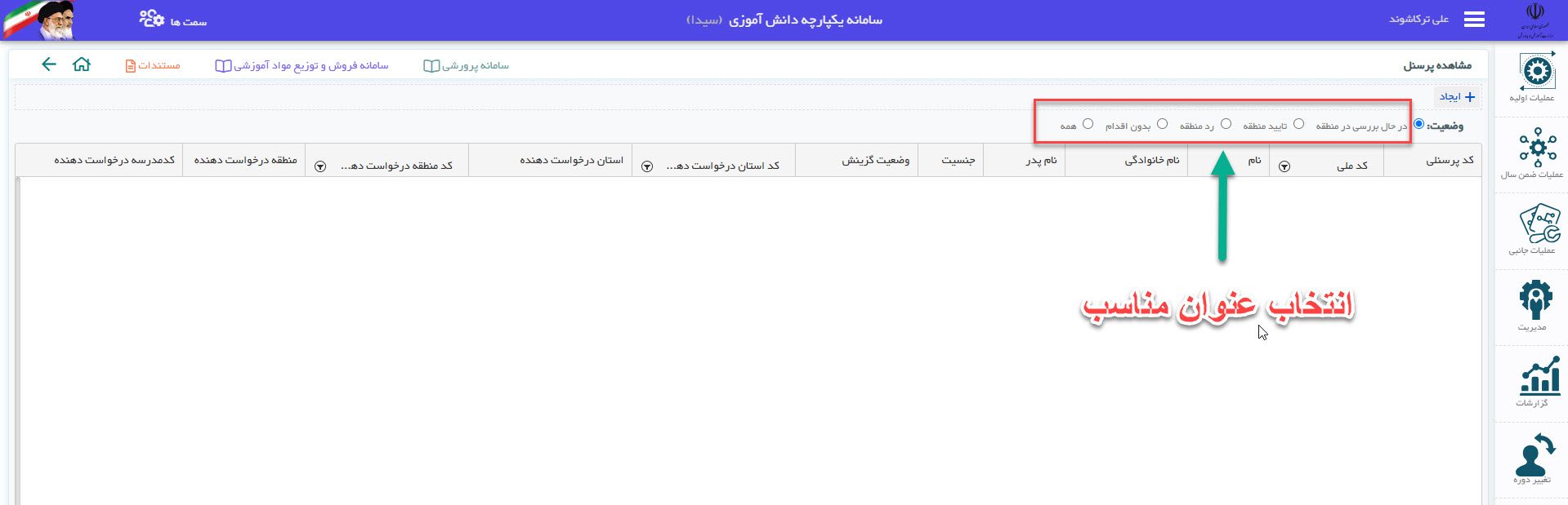 ➖ حال بر روی عنوان بدون اقدام کلیک نمایید تا اسامی همکاران برای شما نمایش داده شود.