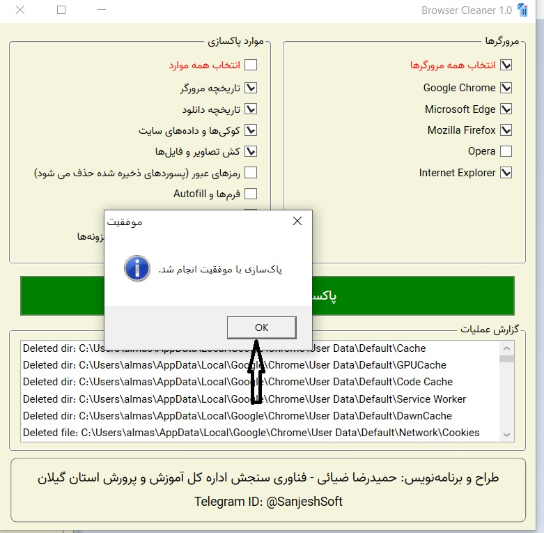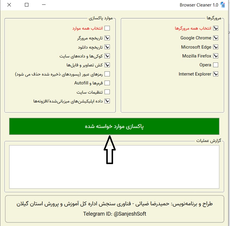 صبر نمای تا عملیات به طور کامل انجام گیرد در پایان با پیام پاکسازی با موفقیت انجام شد مواجه خواهید شد در ضمن در بخش گزارش عملیات گزارشی از کارهای انجام گرفته قابل مشاهده هست.
