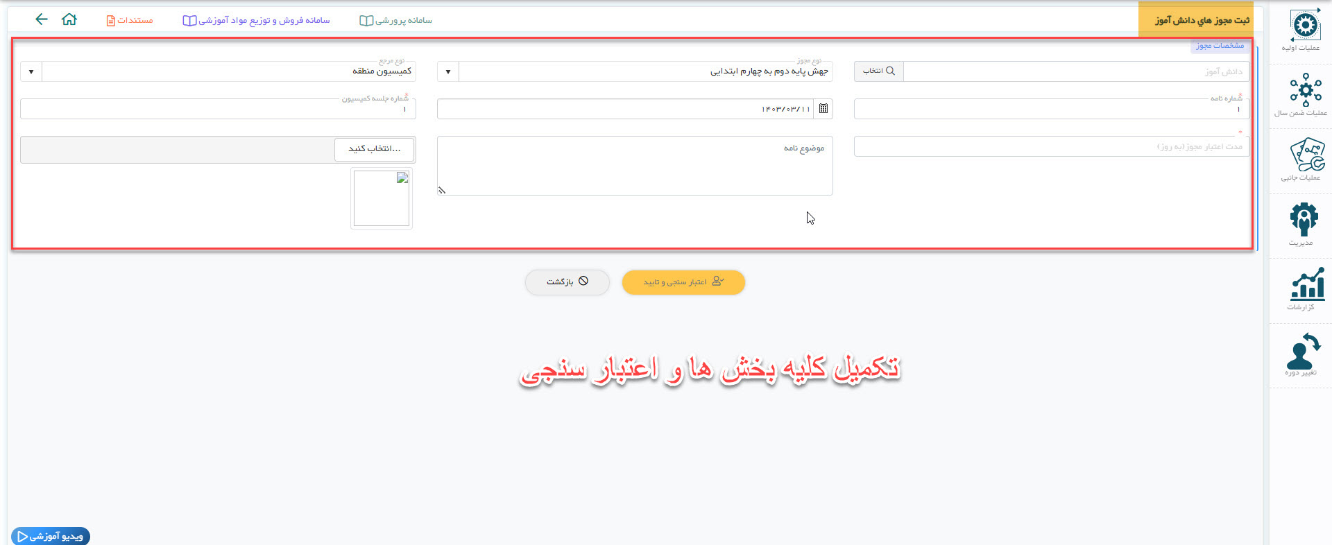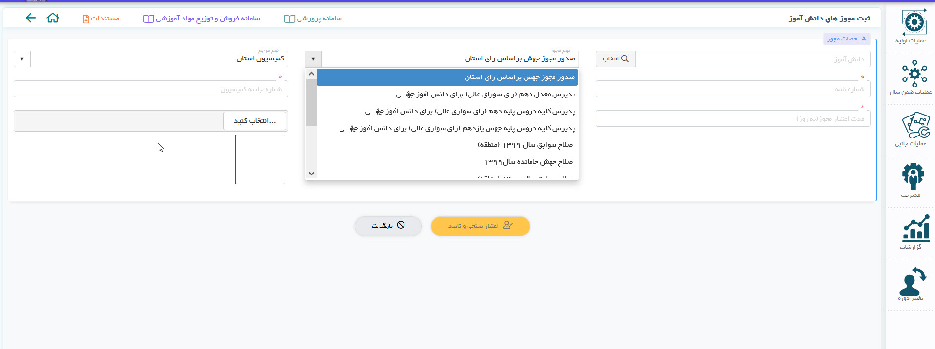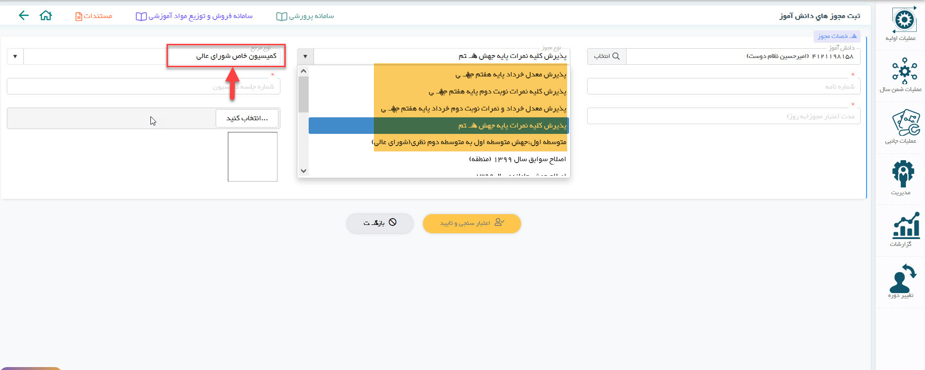 l در متوسطه دوم در بخش نوع مجوز عنوان مورد نظر انتخاب میگردد.