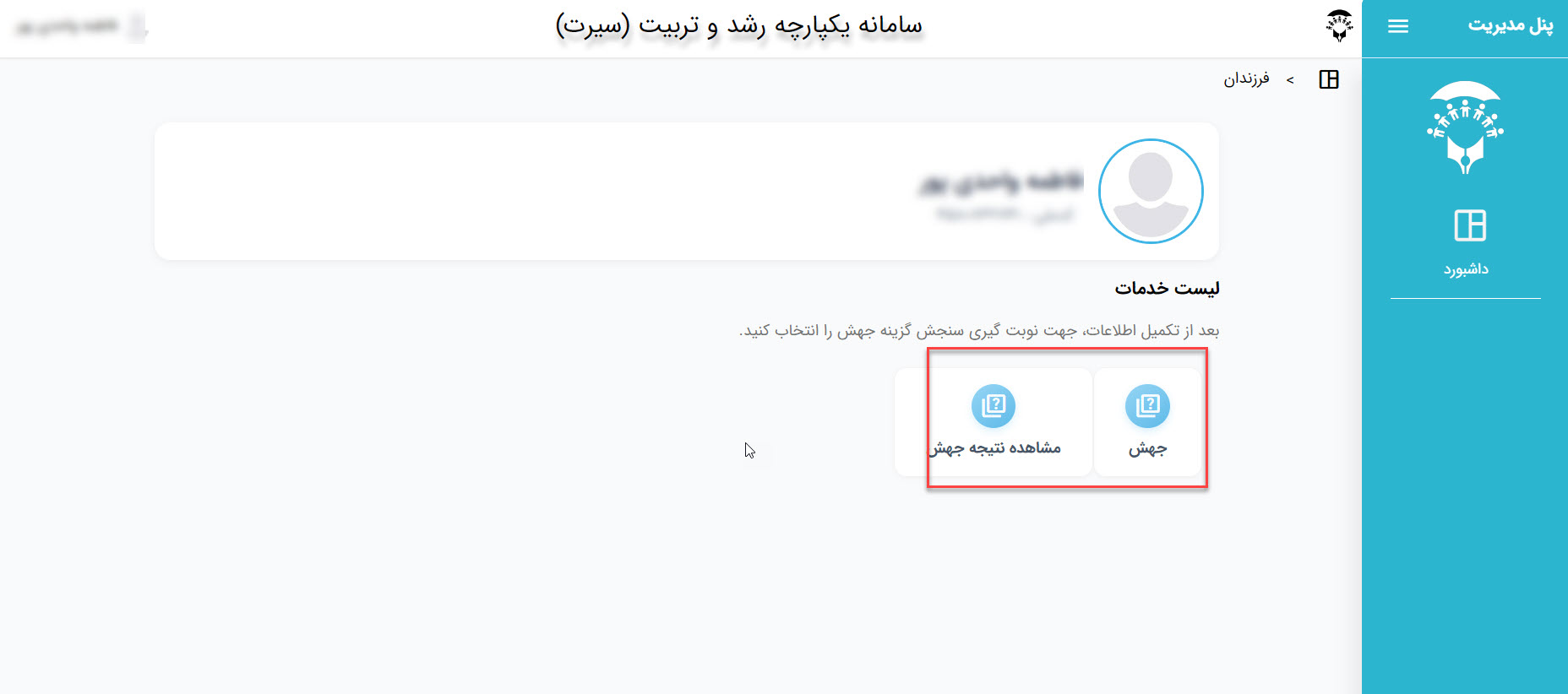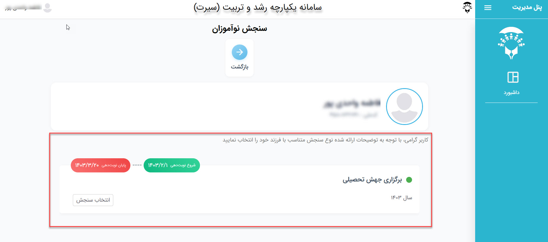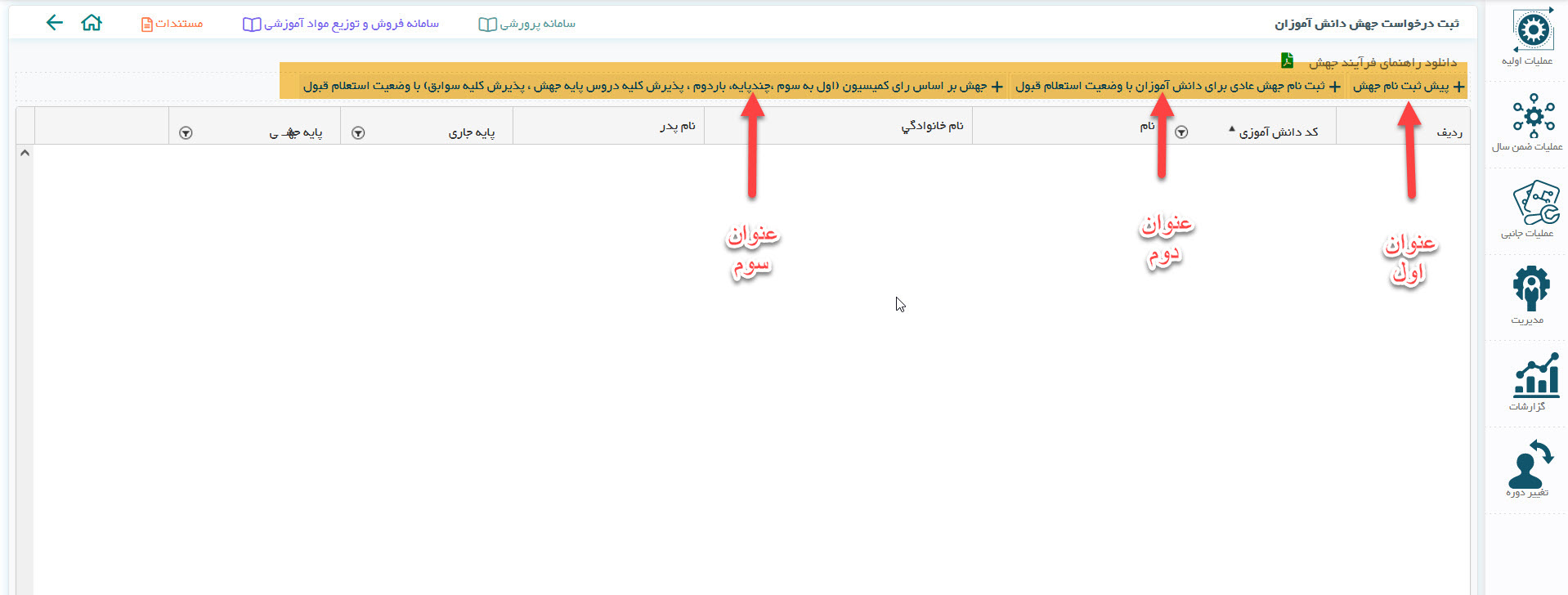 بعد از ثبت جهش و تایید سنجش مدیر وارد کاربری خود شده و ابتدا: