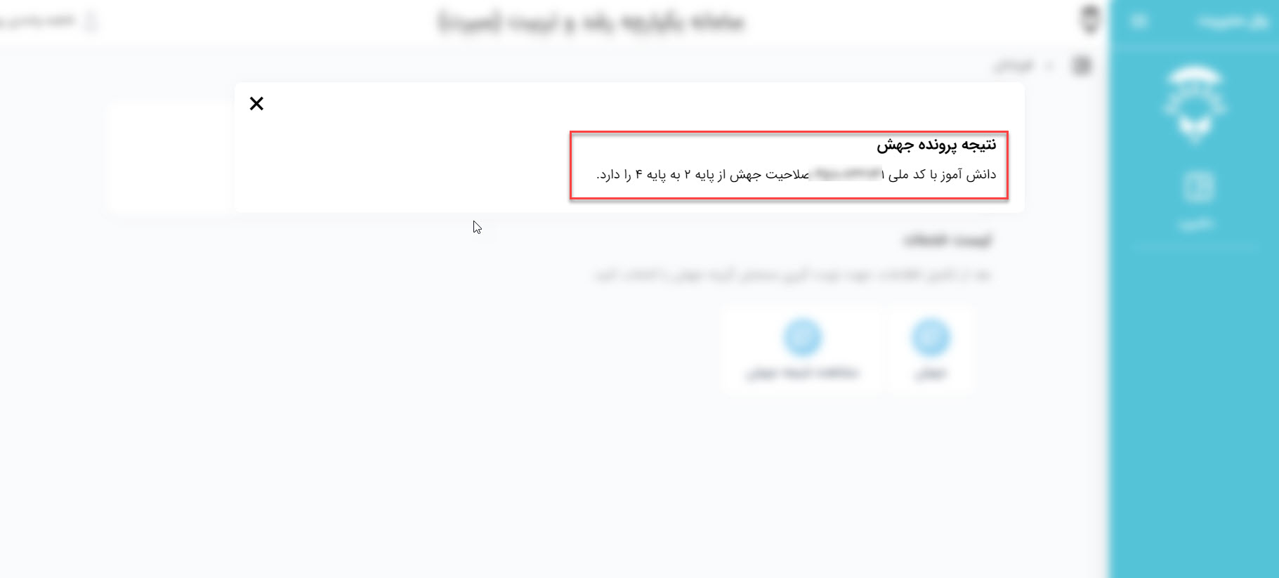 🔺️ با کلیک بر روی مشاهده نتیجه سنجش میتواند نتیجه پرونده جهش را مشاهده نماید که آیا دانش آموز صلاحیت جهش را دارد یا خیر.