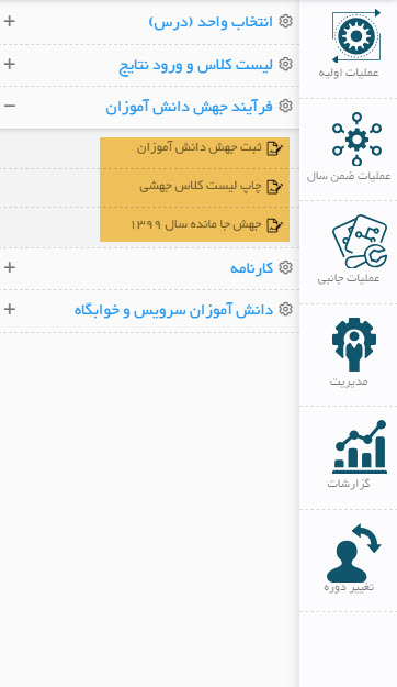 توضیح: در خصوص متوسطه دوم چون دوره تابستان یک دوره کاملاً مجزا از دوره ضمن سال میباشد بنابراین ابتدا باید دوره تابستان شروع، سپس ثبت نام دانش آموزان جهشی در این دوره انجام گیرد.