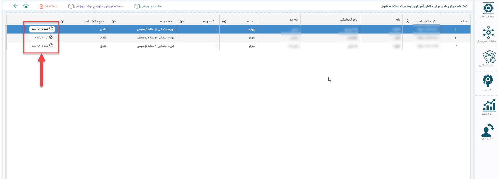 Ì در مرحله سوم سپس مدیر مدرسه وارد مدرسه شده از قسمت عملیات ضمن سال ابتدا:
