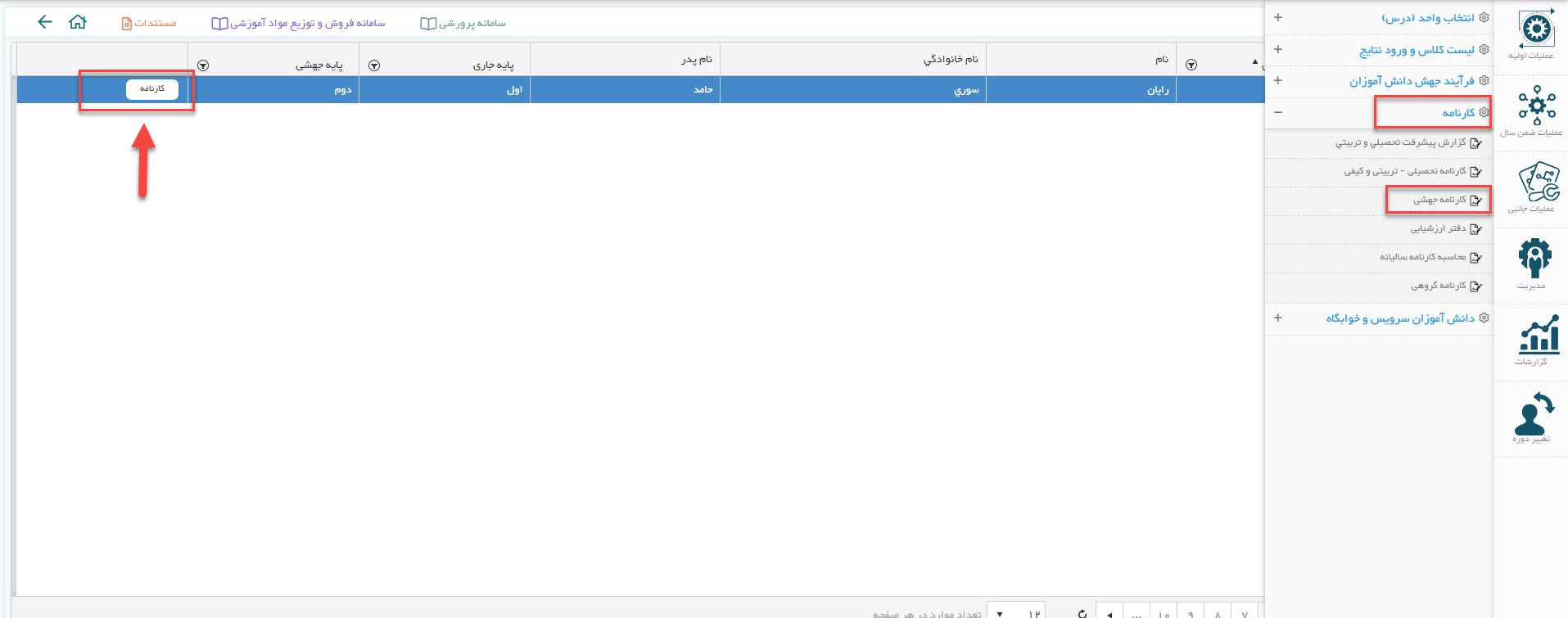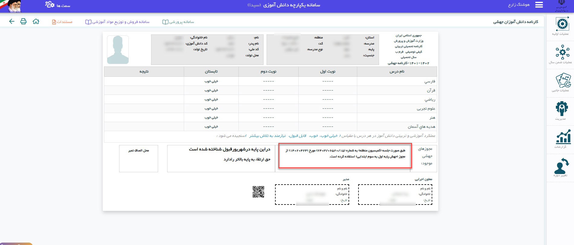 حال مدیر میتواند از همین قسمت روی عنوان کارنامه کلیک نموده تا کارنامه جهشی را چاپ نماید.