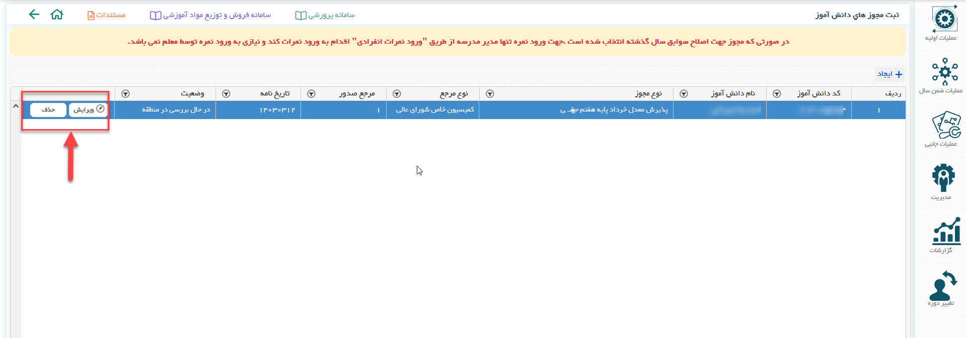 ✍ بعد از ثبت مجوز در صورت لزوم میتوانید درخواست را ویرایش و یا حذف نمایید.