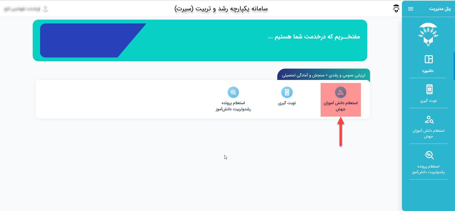 ➖ با ورود به مرحله بعد در صفحه حاضر عنوان استعلام دانش آموزان جهش را لمس مینماید.