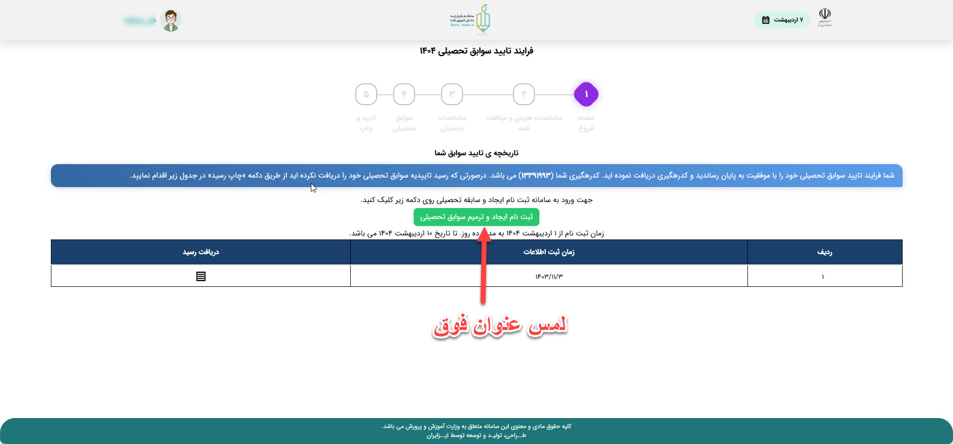 ➖ در صفحه اخیر روی عنوان مشاهده، تایید، ایجاد و ترمیم سابقه تحصیلی کلیک نمایید.