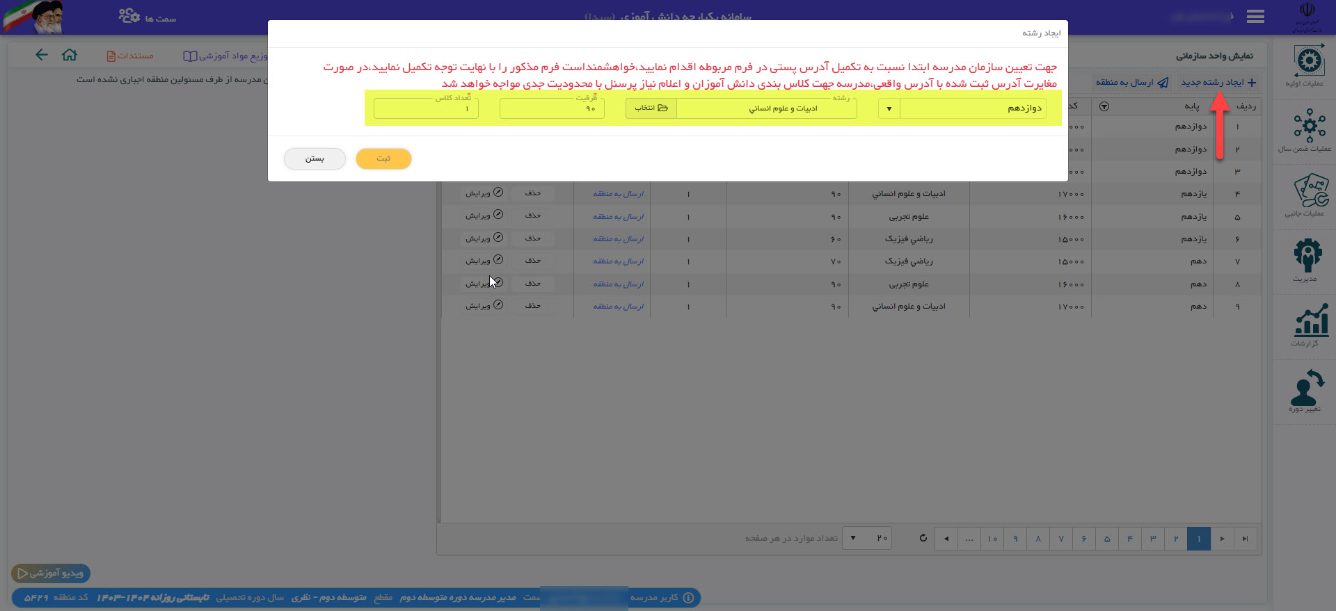 پس از تکمیل بخشهای فوق بر روی عنوان ثبت کلیک کنید. فرایند فوق را برای کلیه رشتهها و پایهها انجام دهید.