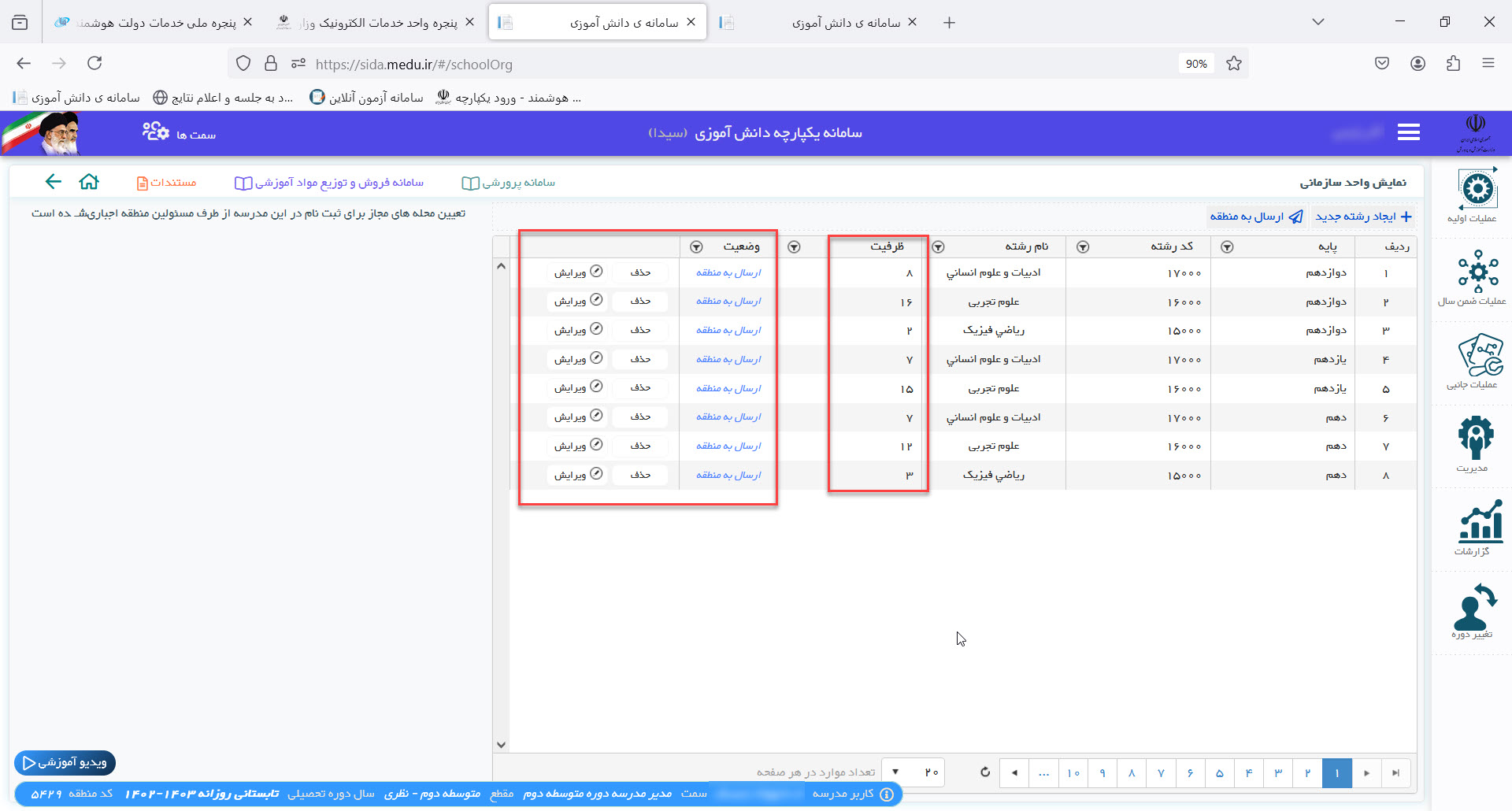 چهار) از قسمت عملیات اولیه، عملیات پیش ثبت نام، روی عنوان سازمان مدرسه کلیک نمایید.
