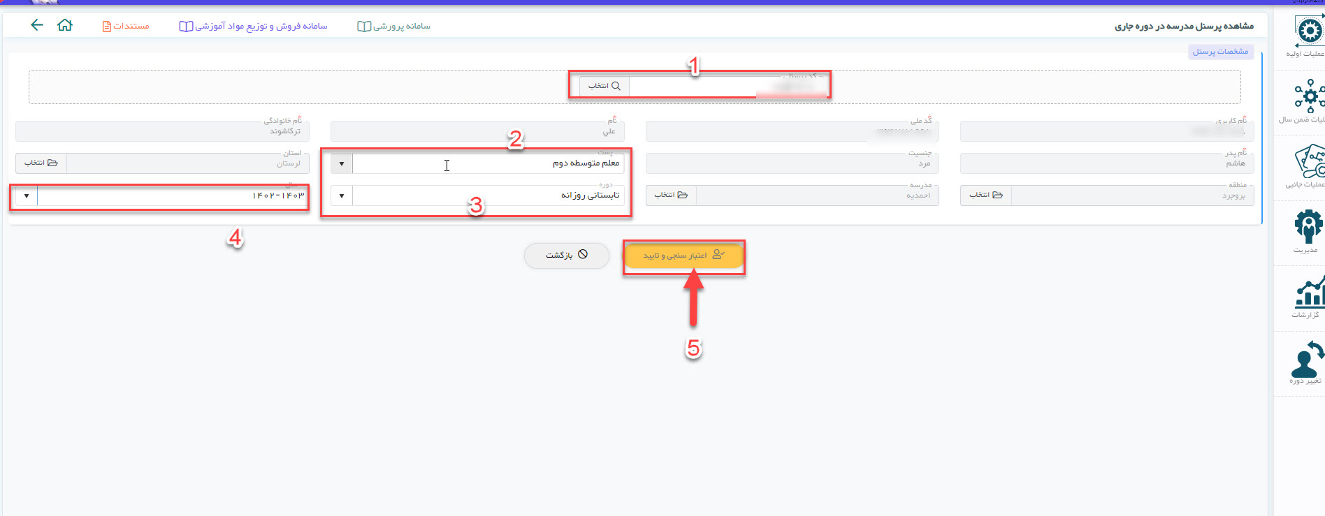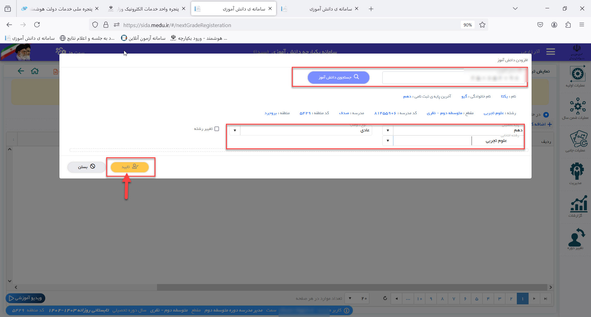سیزده) سپس دروس مربوط به هر دانشآموز را انتخاب و در نهایت اعتبارسنجی و تایید نمایید.