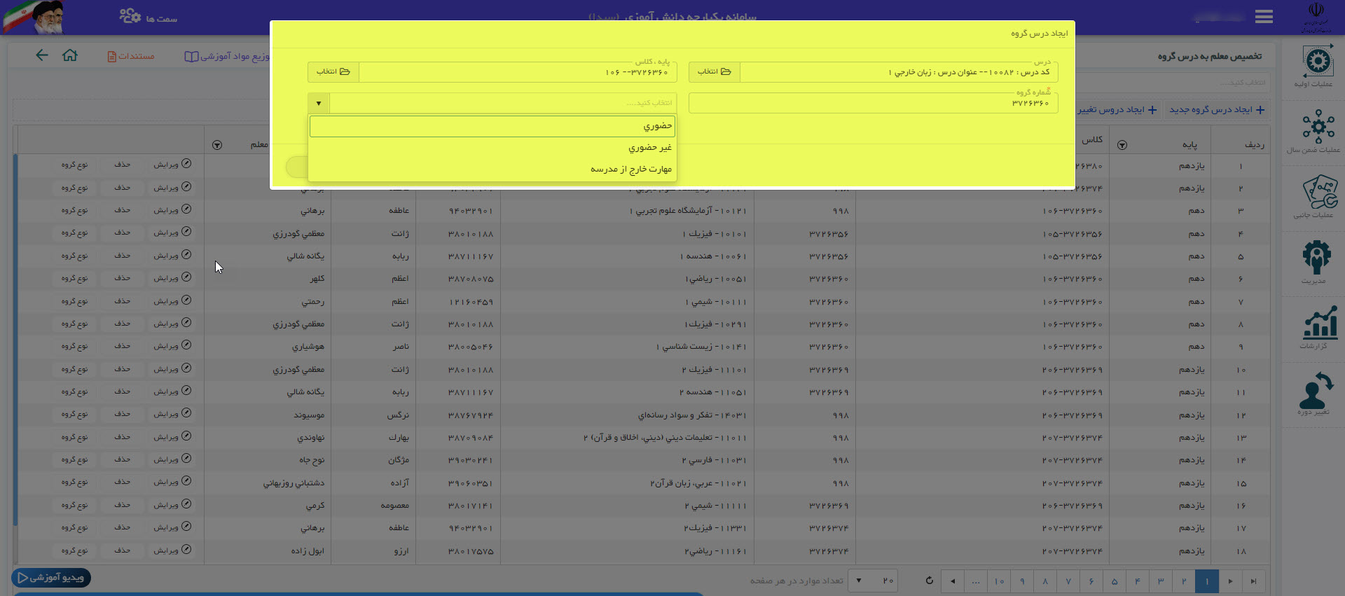 سیزده) در قسمت عملیات ضمن سال، تخصیص معلم به درس گروه، پس از تعریف کلیه دروس با استفاده از عنوان ویرایش برای کلیه دروس معلم تخصیص دهید.