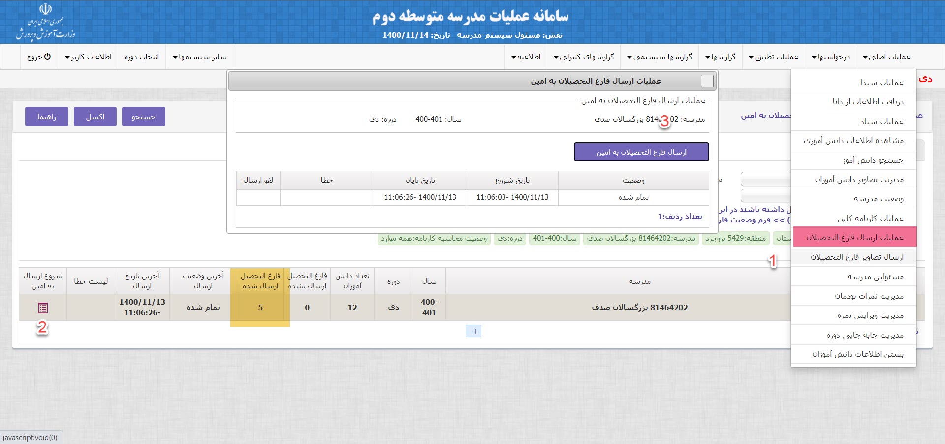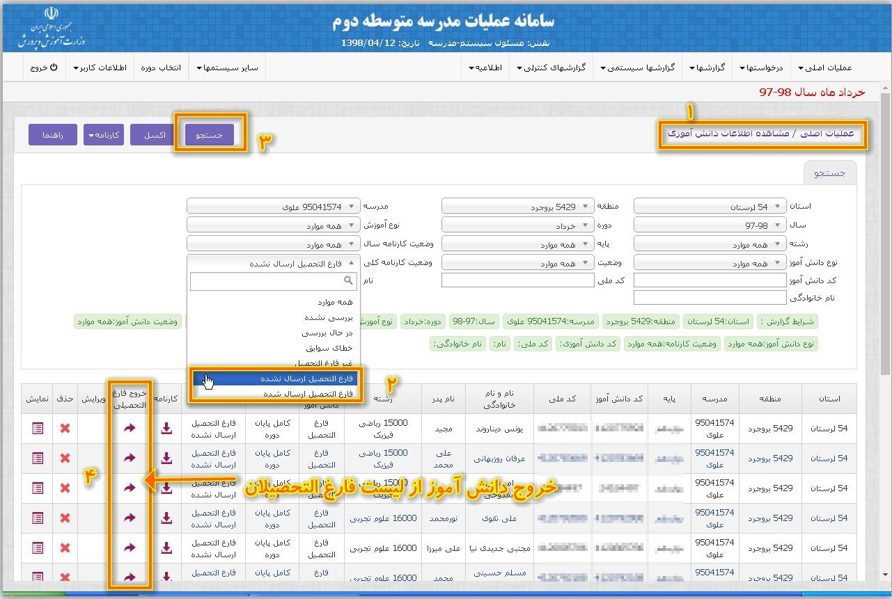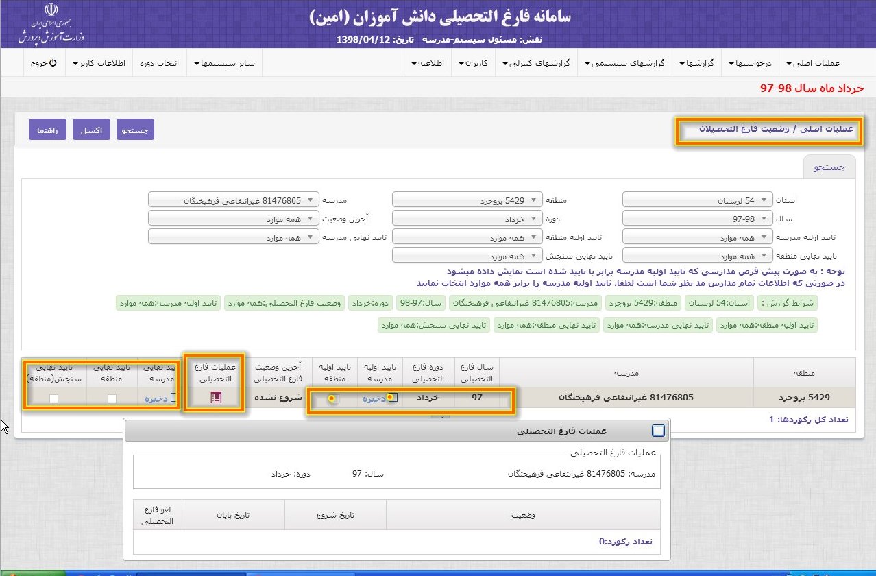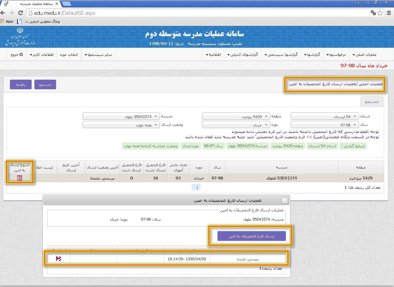 برچسبها: عملیات فارغ التحصیلی, ارسال نمرات نهایی, وضعیت مدرسه, محاسبه کارنامه