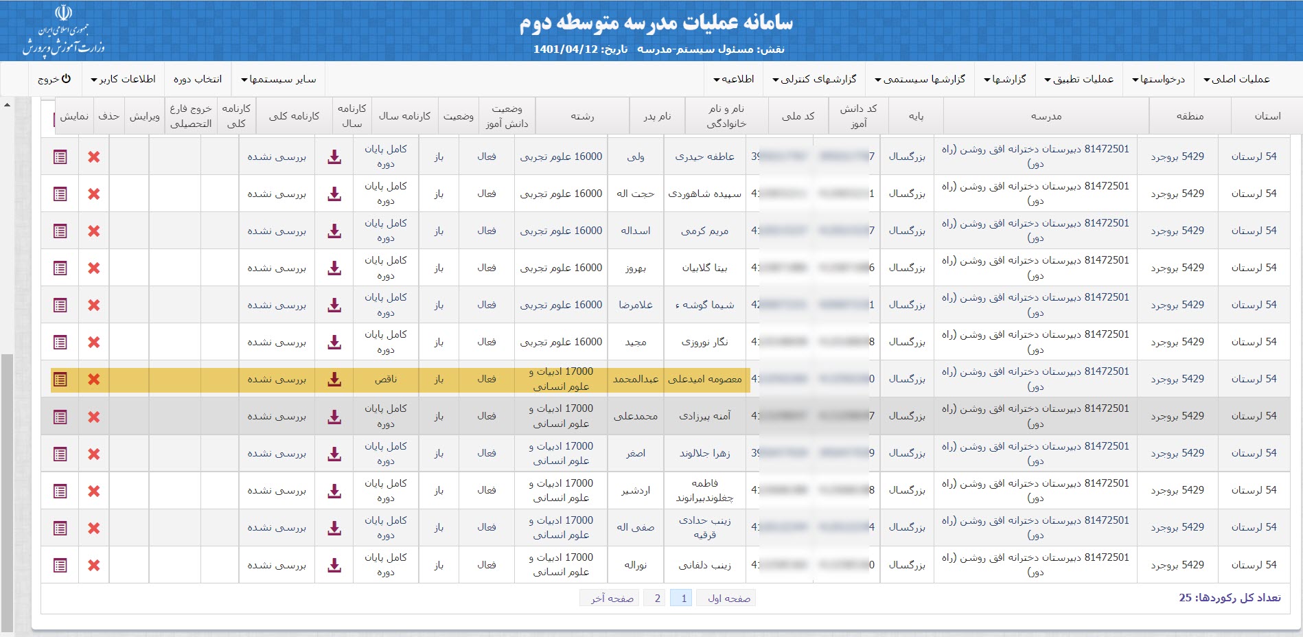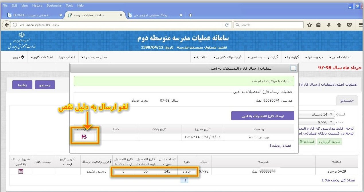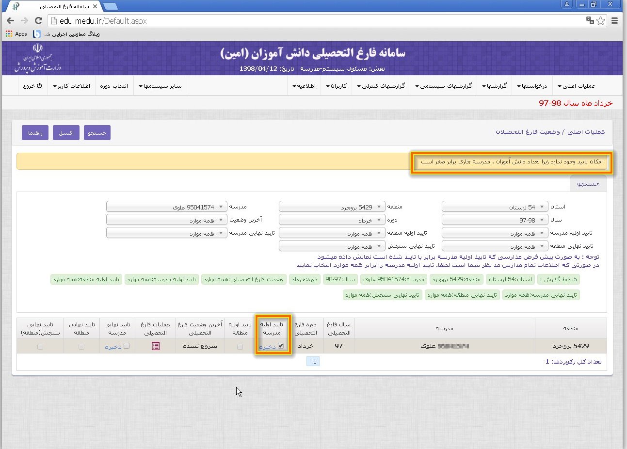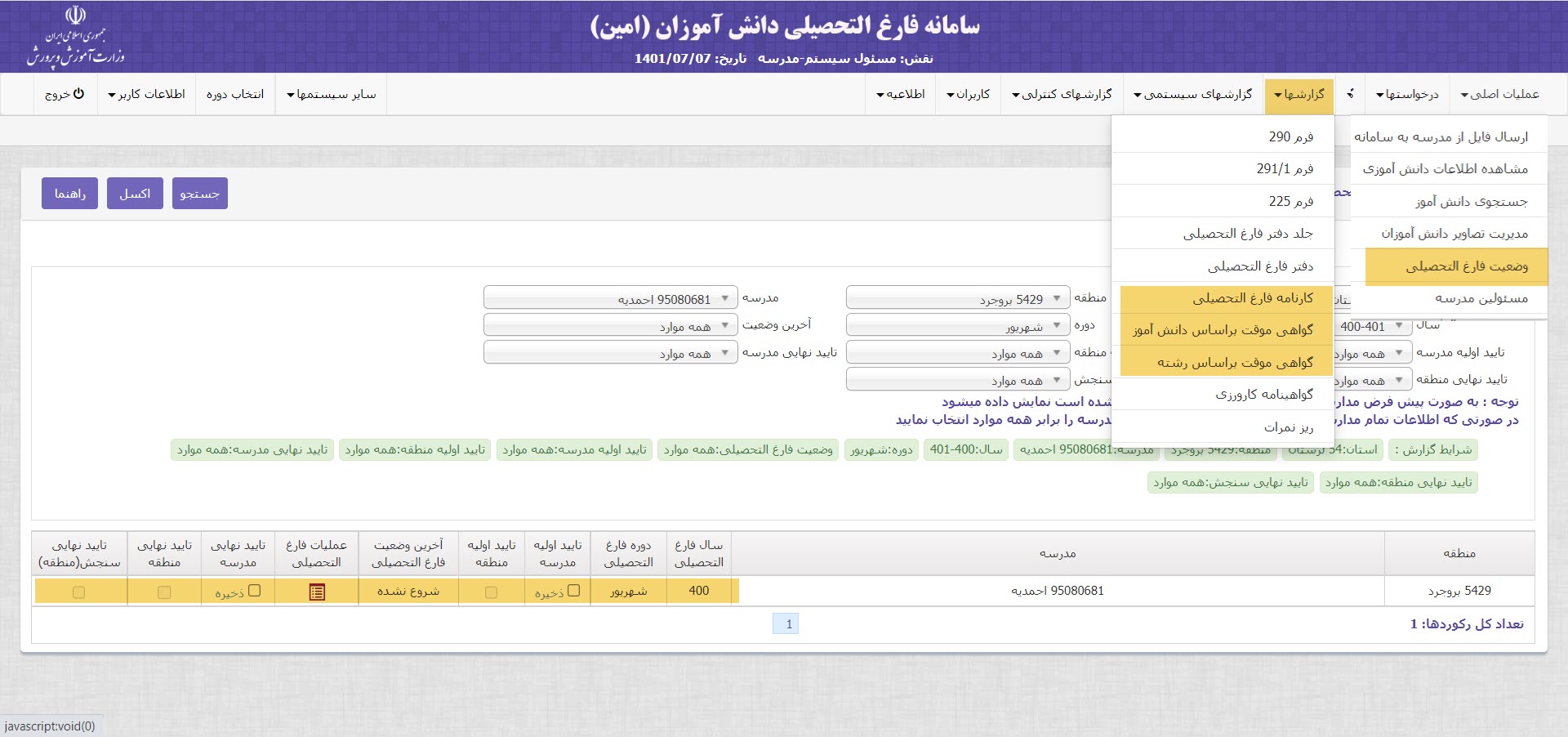 برچسبها: عملیات فارغ التحصیلی, ارسال نمرات نهایی, وضعیت مدرسه, محاسبه کارنامه