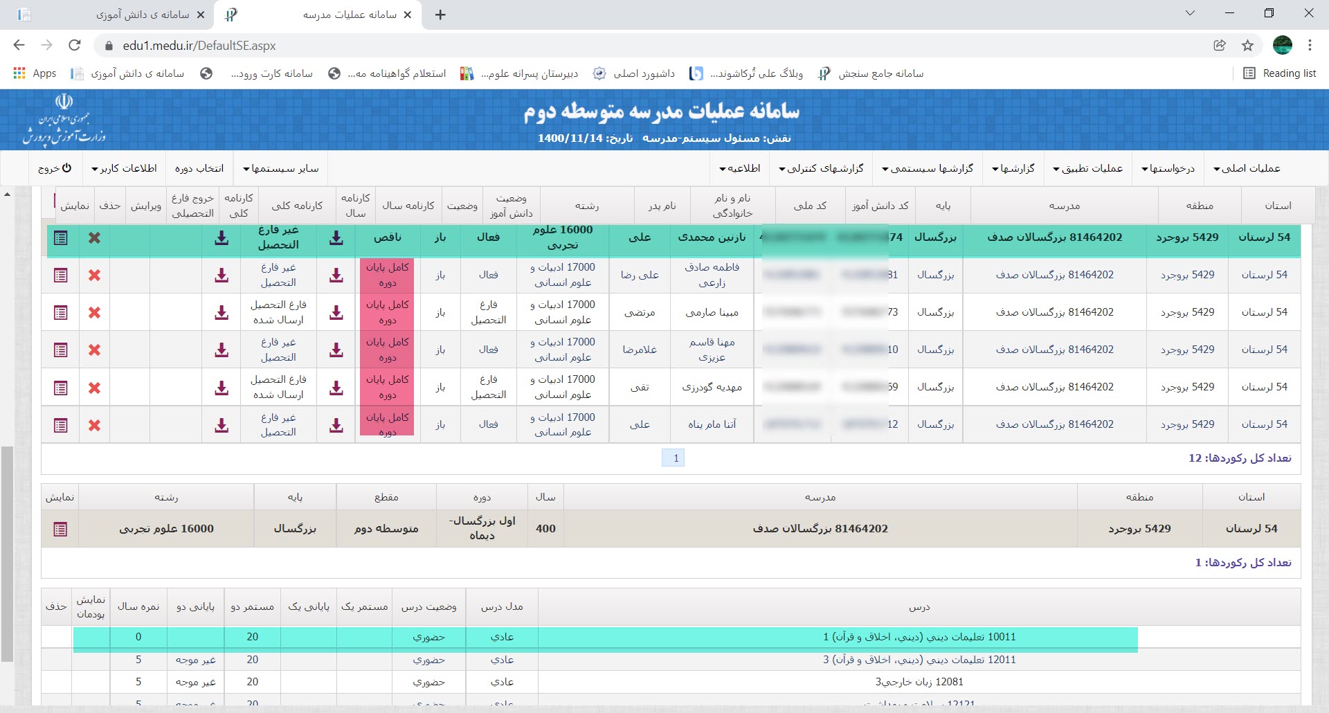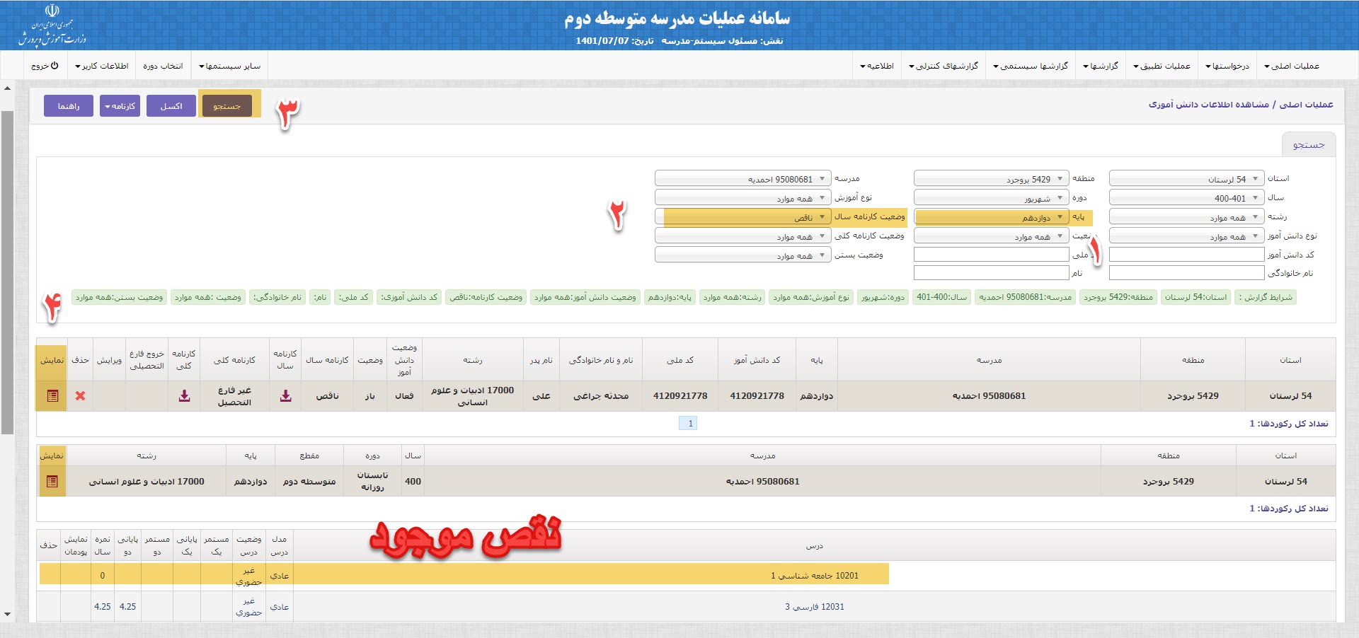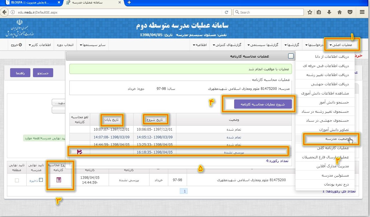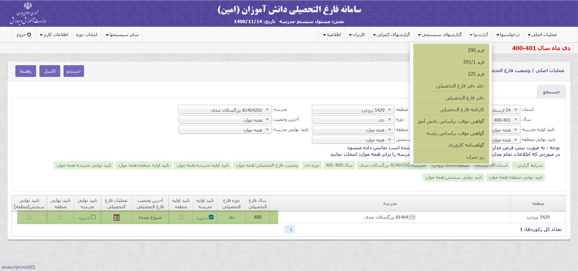 برچسبها: عملیات فارغ التحصیلی, ارسال نمرات نهایی, وضعیت مدرسه, محاسبه کارنامه