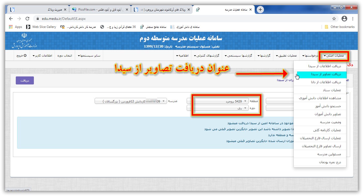 توجه: قبلاً روش ذخیره و بارگذاری تصاویر (استخراج تصاویر دانش آموزان از سیدا) به طور مبسوط بیان شده است که میتوانید از آن استفاده نمایید.