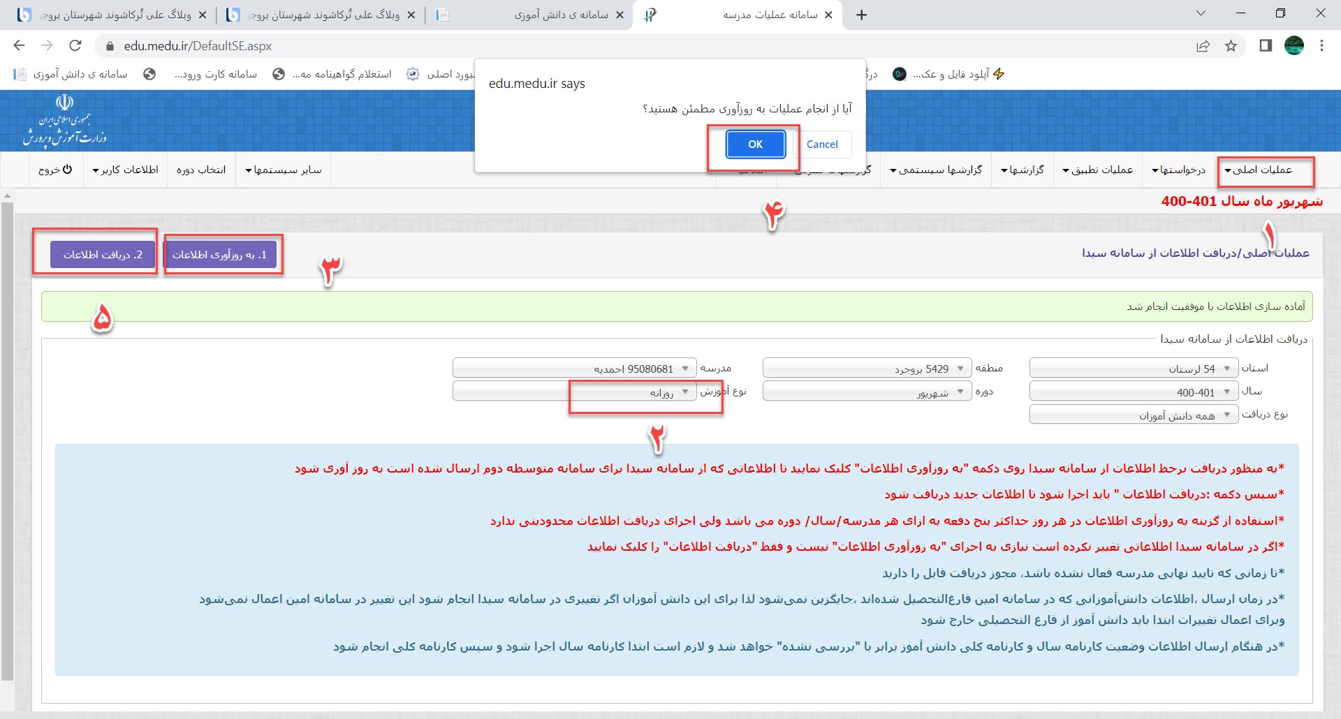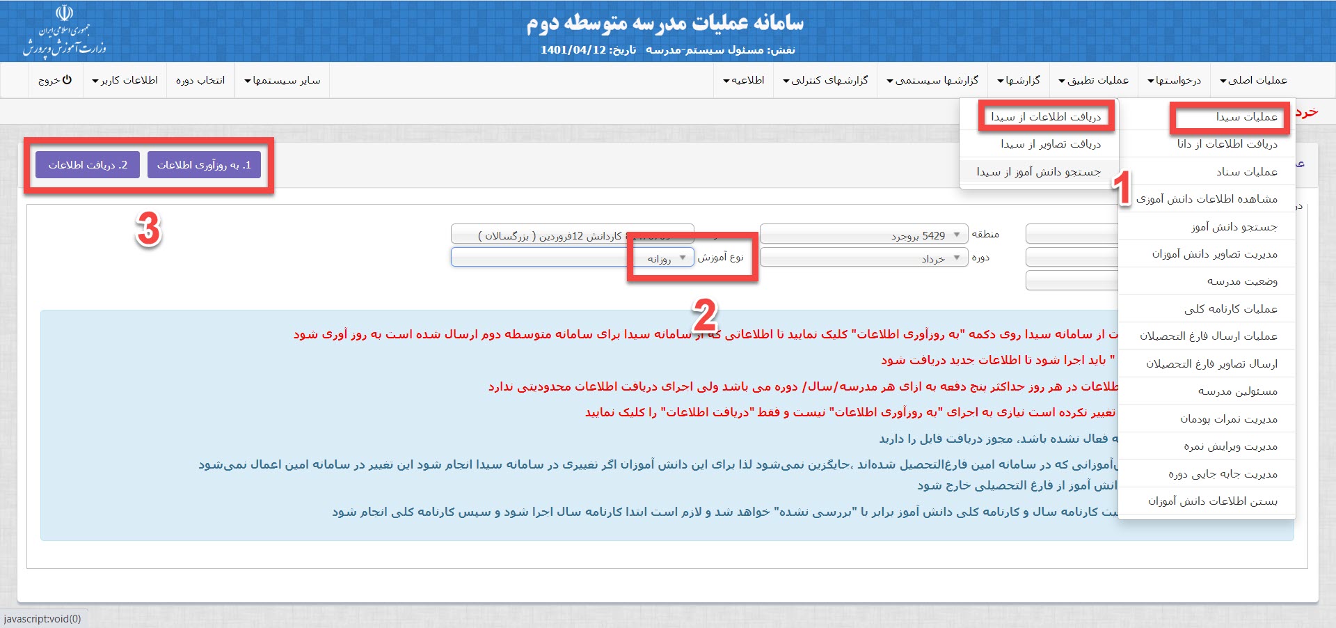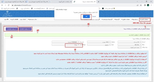 ۱۱. حال عنوان دریافت اطلاعات را لمس نمایید با انجام این کار اطلاعات دانش آموزان در سامانه دریافت خواهد شد.