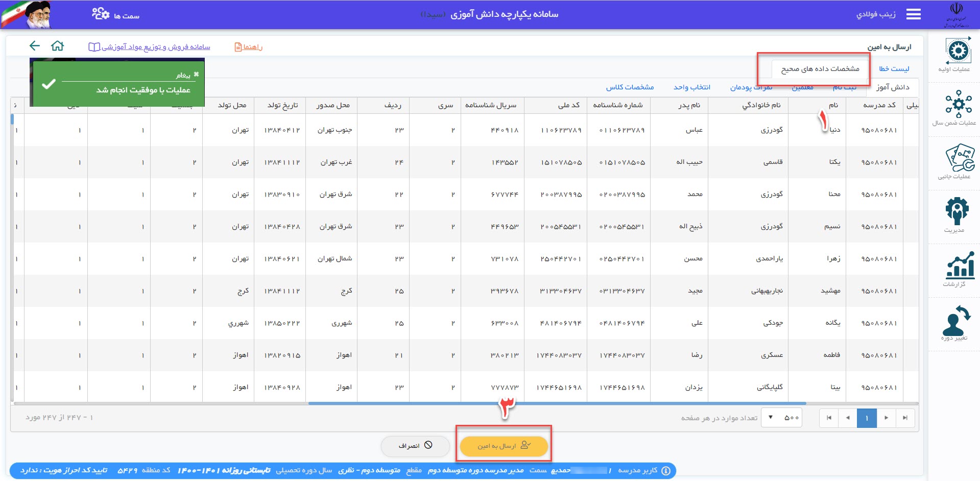 ب- مشخصات دادههای صحیح: در این بخش اسامی کلیه دانش آموزانی که اطلاعات آنها کامل میباشد قرار دارد.