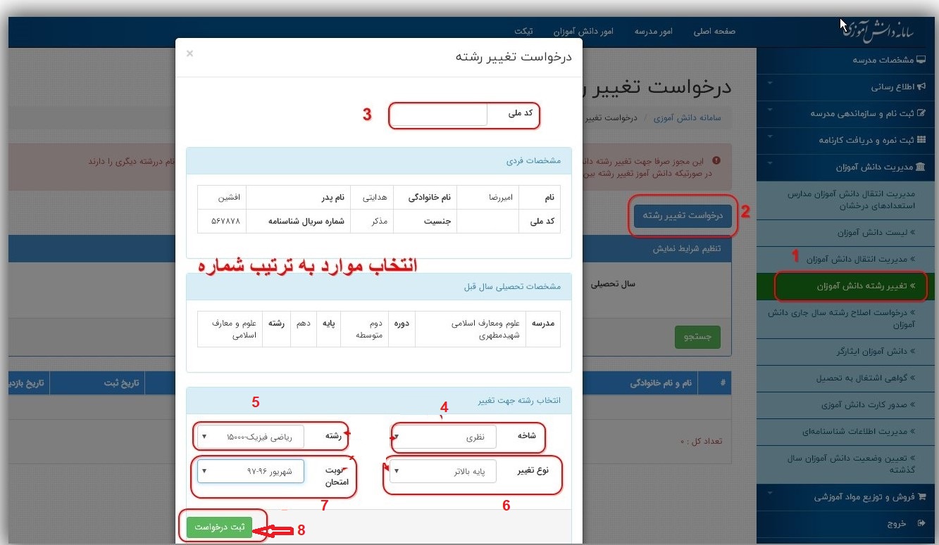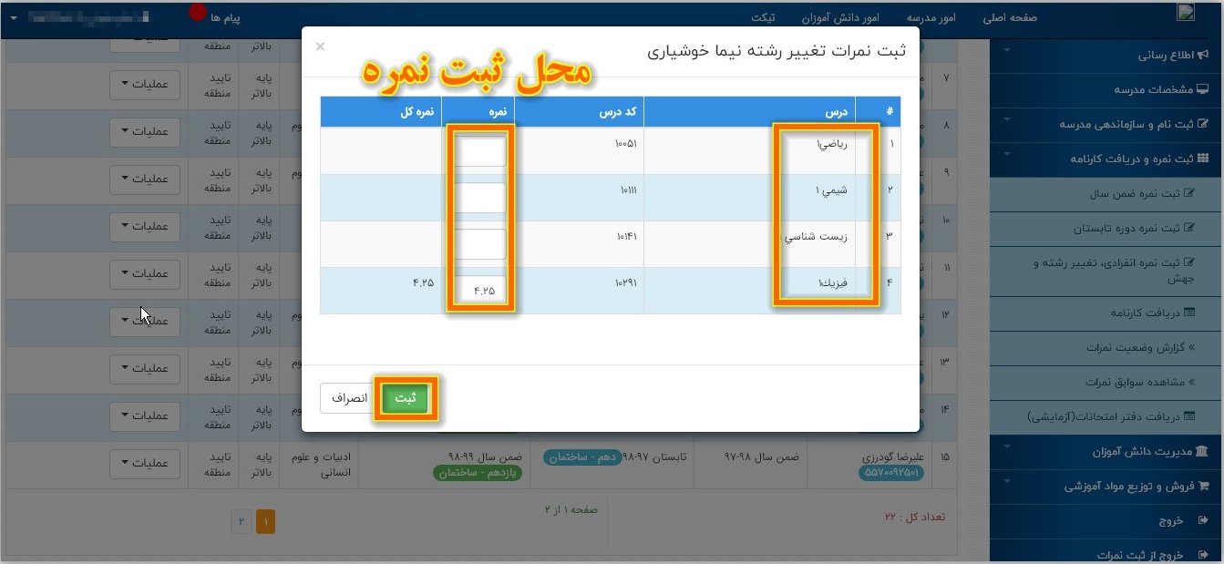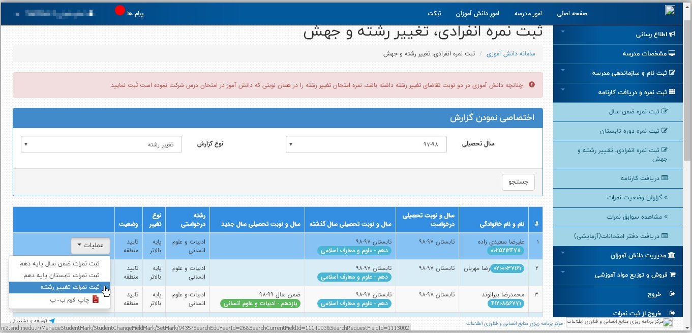 برچسبها: ثبت درخواست تغییر رشته, کارنامه تغییر رشته, ثبت نمرات تغییر رشته, مدرسه ممتحن
